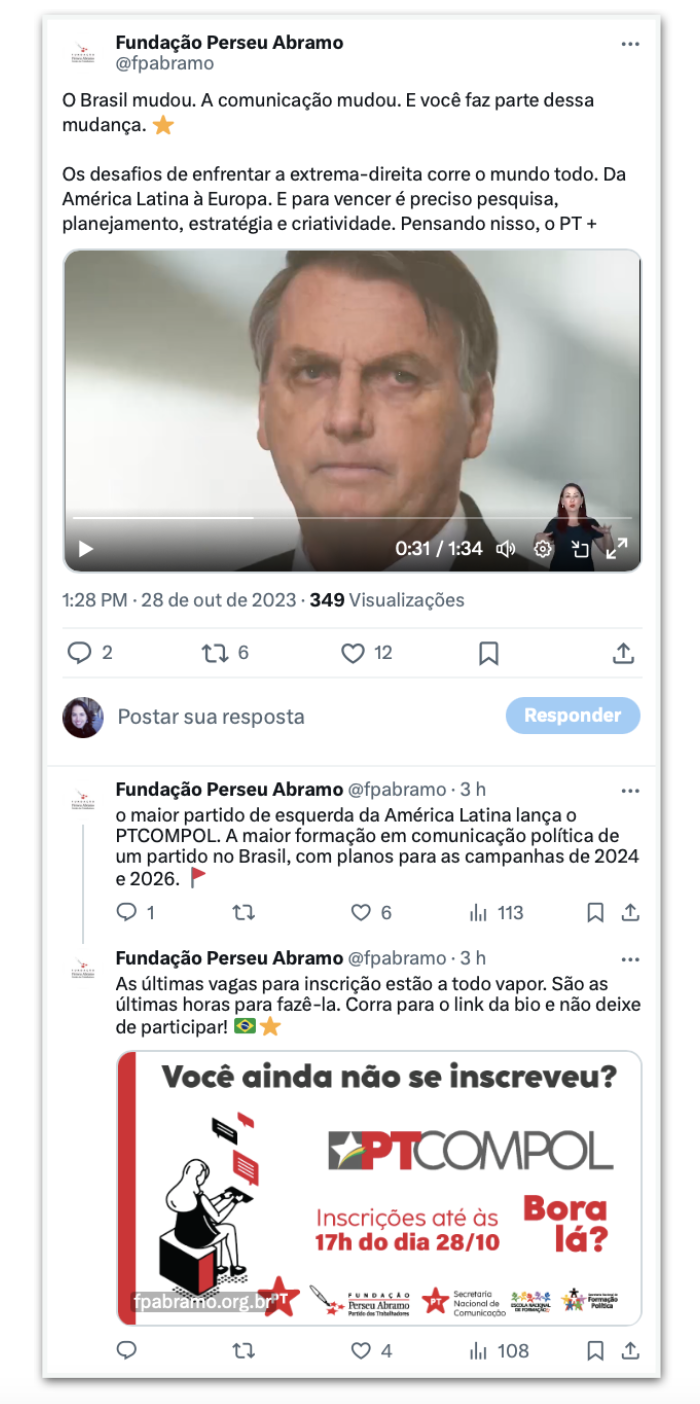 Na rede social, a fundação diz ainda que “o Brasil mudou”, bem como a comunicação. Um vídeo com imagens de políticos de direita, como os ex-presidentes dos Estados Unidos Donald Trump, e do Brasil, Jair Bolsonaro, acompanha a publicação. Nele, o partido diz que “Europa e América Latina enfrentam o desafio de vencer a extrema direita”, especialmente no Brasil. O trecho é ilustrado com imagens de Bolsonaro.