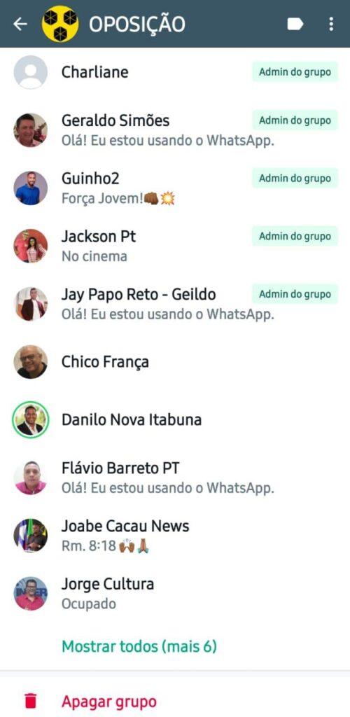 Geraldo Simões (PT), ex-prefeito de Itabuna, está à frente de um grupo de WhatsApp denominado “Oposição”. O que chama a atenção é que a maioria dos participantes tem afinidade com ACM Neto (UB) e Bolsonaro (PL). Entre os membros do grupo, destacam-se figuras como o carlista Pancadinha (SDD) e o bolsonarista Chico França (PL).
