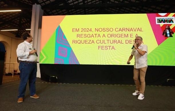 O Governo do Estado vai garantir a folia do Carnaval 2024 em mais de 80 municípios do interior baiano. O anúncio foi feito na noite desta última quarta-feira (31), em Lençóis, pelo governador Jerônimo Rodrigues, ao lado do coordenador-geral do Carnaval da Bahia, o vice-governador Geraldo Júnior. São investimentos em ações e projetos nas áreas de segurança, saúde, turismo, infraestrutura, promoção da diversidade, cidadania e cultura para mais uma edição do Carnaval da Bahia, que este ano traz o tema “50 Anos de blocos afro. Nossa energia é ancestral”.