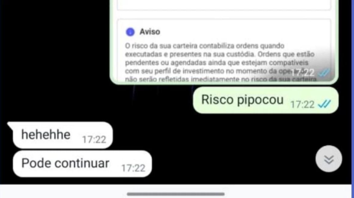 Em áudio anexo ao processo, o assessor diz a Damasceno para mostrar no app da corretora que tem, de fato, um perfil agressivo e, como prova disso, declarar em um formulário que já aportou dinheiro em fundos nos quais ainda não tinha investido e que estavam sendo oferecidos pela XP.