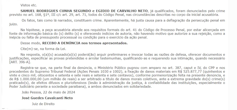 Foram denunciados o padre Egídio de Carvalho, ex-diretor da entidade; e Samuel Segundo, ex-funcionário do Hospital.